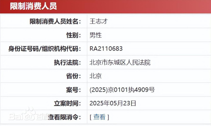 今年8月,王志才被限制高消费的消息传出来,让这件事变得更加扑朔迷离。